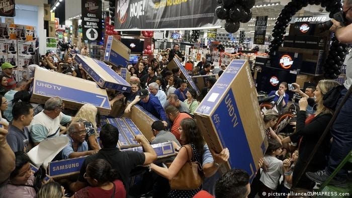 Em que situações é que poderá haver oportunidades de investimento onde o preço seja inferior ao valor da empresa com uma margem de segurança? Diz-se que o mercado acionista é o único local onde as pessoas fogem da loja em dias de promoções. É nesses dias que vamos querer fazer uma autêntica shopping spree. Os humanos são seres emocionais e sociais. O nosso cérebro não gosta de incerteza, visto que a nossa história biológica foi marcada por uma abundância de riscos face a potenciais oportunidades. Não só temos a tendência para entrar em pânico desnecessariamente, como temos a tendência para seguir aquilo que o grupo faz, independentemente de fazer ou não sentido. (o famoso herd effect) O ciclo emocional dos investidores é a razão pela qual a bolsa continua a apresentar comportamentos e padrões semelhantes aos que eram experienciados 100 anos atrás, ainda que o mundo seja completamente diferente. É impressionante como as experiências que Jessie Livermore, considerado o melhor trader de todos os tempos, descreve na sua biografia Reminiscences of a stock operator, continuam super atuais para o paradigma dos dias de hoje. Éramos e seremos sempre seres irracionais! É por esta razão que as melhores oportunidades de investimento se encontrarão sempre num bear market marcado por medo, pânico e depressão, que levarão naturalmente a preços mais baixos. Lembre-se que da próxima vez que houver um crash na bolsa, é altura de ir aos saldos! É a única altura do ano que vale a pena comportarmo-nos como os senhores da foto em baixo.