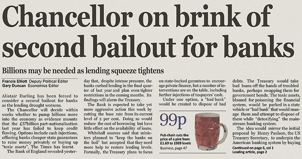 “The Times 03/Jan/2009 Chancellor on brink of second bailout for banks”.