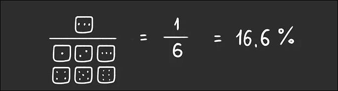 Rolar um dado (não viciado) é um evento que apresenta um desfecho aleatório. É impossível dizer de antemão qual é o número que irá ficar virado para cima. O que poderemos calcular, no entanto, é a probabilidade de cada um dos possíveis desfechos suceder. Para calcularmos a probabilidade de sair por exemplo 3, necessitamos da seguinte fórmula: